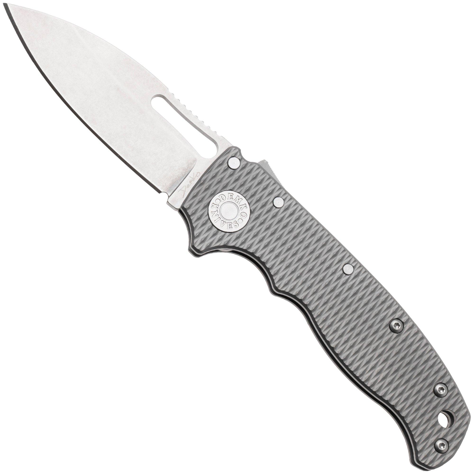 Demko AD20.5 Slicer Shark AD205-3V-MLD-TI-SS, Stonewashed CPM-3V, Gray Milled Titanium, couteau de poche